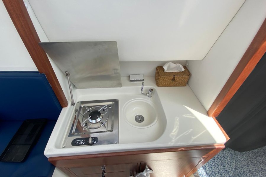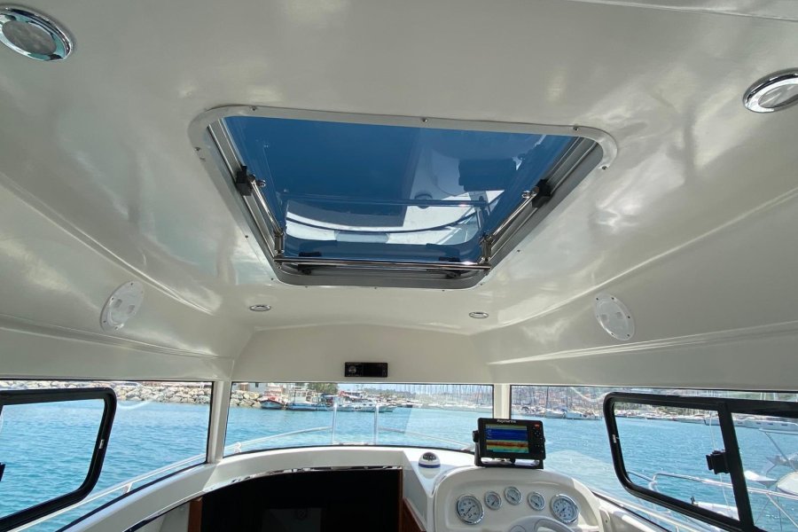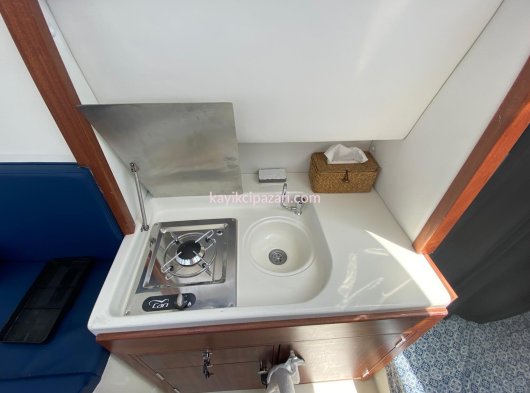 Tekneye fabrika çıkışına ilave HİDROLİK DİREKSİYON takılmıştır. 150 LT elastik temiz su tankı konulmuştur.