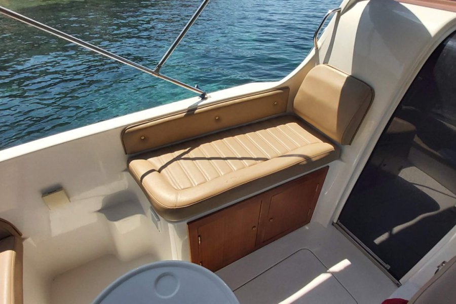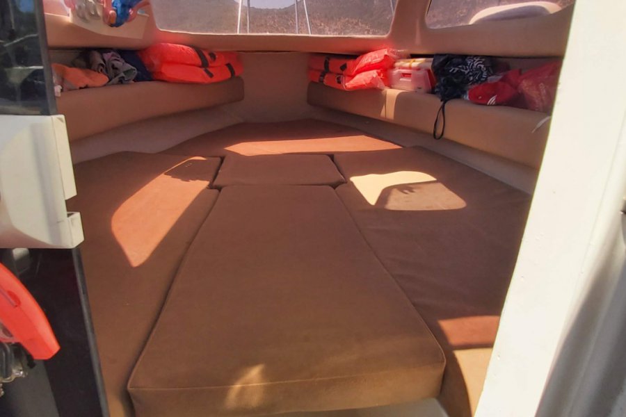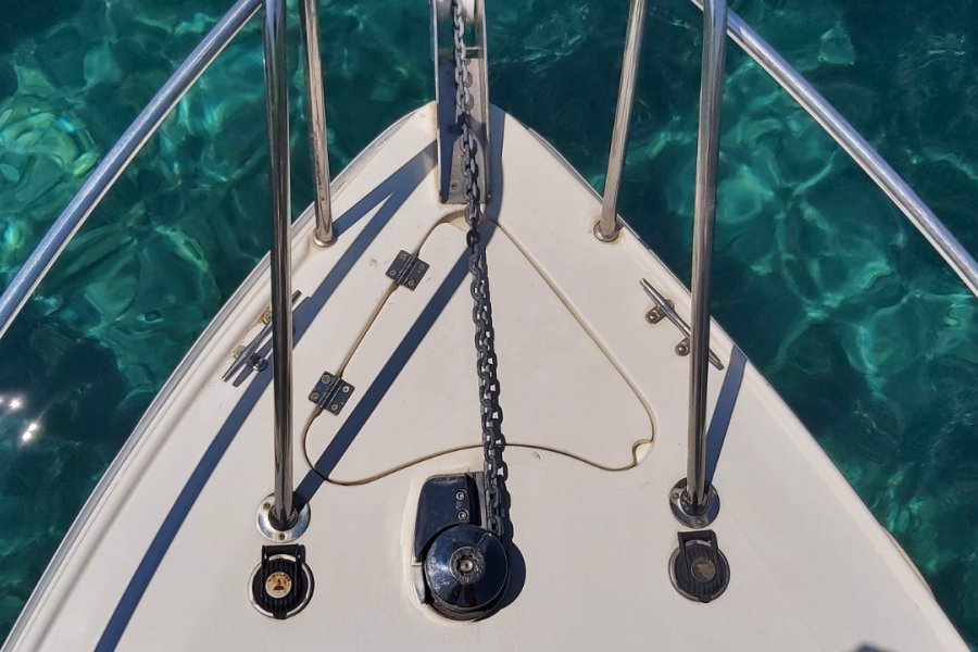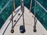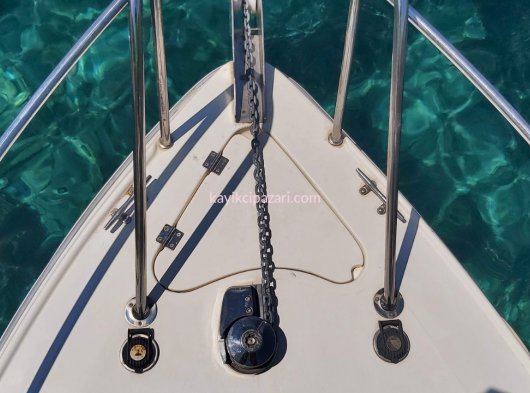 900 Watt Irgat, Kaptan bölümünden veya pruvadan ayak ile kontrol butonları 35 metre galvaniz zincir, 7 kg Paslanmaz Krom Danforth Çapa, kıç için 4 kg galvaniz katları şemsiye çapa.